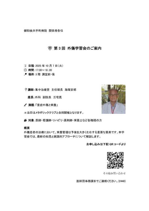 第3回 外傷学習会のご案内 「重症外傷と栄養」について